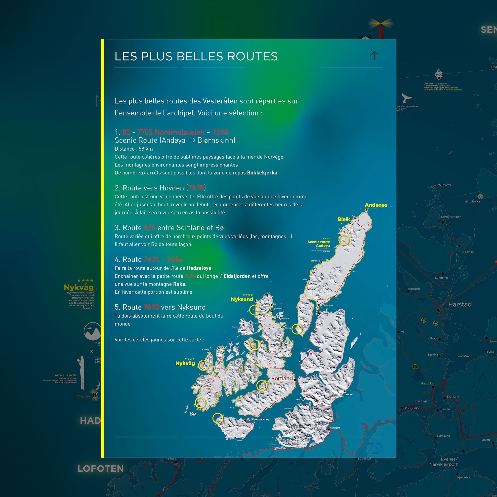 Notre carte et notre guide des îles Vesterålen vous guident sur cet territoire de 2500 km2 incroyablement variée.